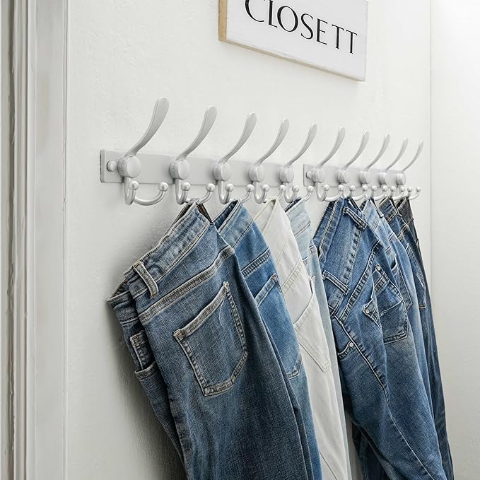 - 【16” Stud Ready, 3X Stronger Hold:】 The wall coat hooks features 16” stud-mounted spacing. Holds 50 lbs. Easy to install in 5 mins. (drywall anchor included)