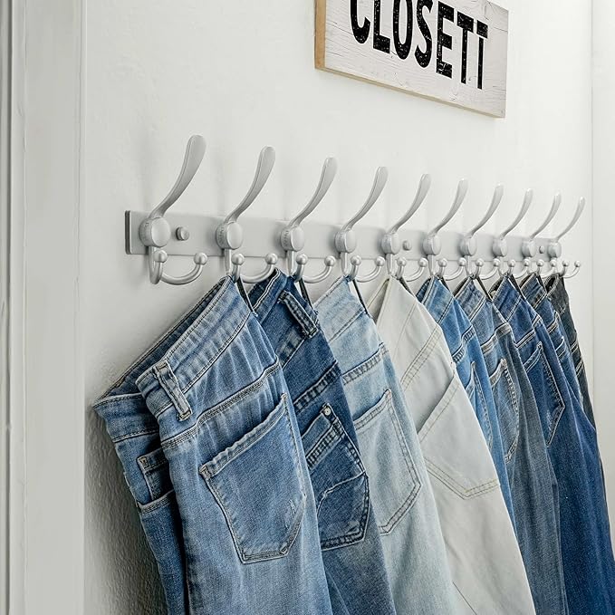 Dseap MaxStrong 2.0 Coat Rack Wall - 37” Long 10 Tri Hooks - Ultra Heavy-Duty Stainless Steel Wall Mount Coat Hanger, Hook Rail for Clothes Hats Jacket Towels Silver