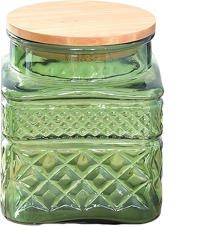 - 【Vintage Embossed Glass Jar】This food storage jar designed with popular vintage embossed elements, safety and sturdy enough for everyday home use, thick glass coffee bean storage jar. Fingerprints are wellprevented by the unique texture.