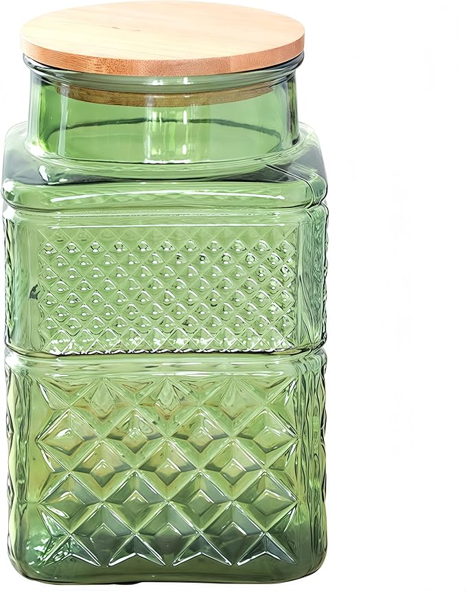 - 【Vintage Embossed Glass Jar】This food storage jar designed with popular vintage embossed elements, safety and sturdy enough for everyday home use, thick glass coffee bean storage jar. Fingerprints are wellprevented by the unique texture.