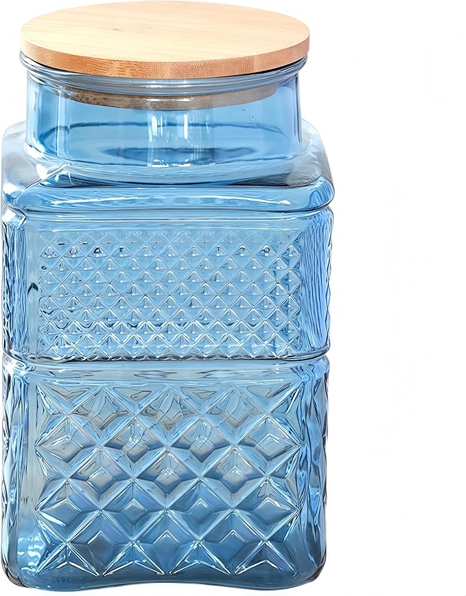 - 【Large Capacity Glass Jar】Two specifications are available, Large: 60 Fl oz/ 1.5Qt/ 1800ml/ 0.5Gal of liquid; Medium: 38 Fl oz/ 1Qt/ 1100ml/ 0.3Gal;holds 600 grams of coffee beans,Each glass jar comes with an airtight bamboo lid and rubber gasket to ensure a leak-proof and airtight seal, keep your food dry and fresh for a long time.