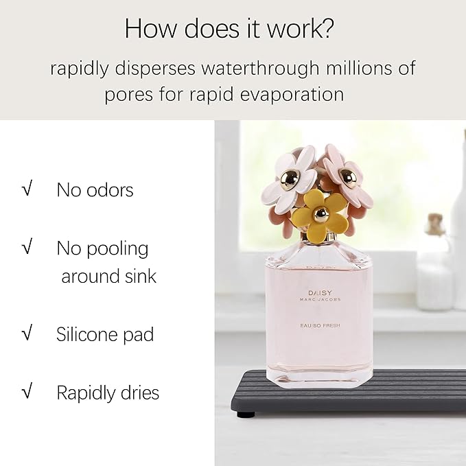- Perfect Design Created for the Modern Home, to make life clean, comfortable and orderly. Suitable to be used as absorbent mats for soaps / cups / soap bottle / dish sponge / make-up bottles, and anywhere you need to absorb water quickly and keep the table / countertop surface dry.