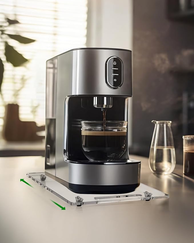 - Easy to Use: No assembly required, our coffee maker slider are ready to use right out of the box! Make it easy to quickly and quietly slide your kitchen appliances, allowing you to smoothly pull them out from under the cabinets, easy to add water and coffee beans, while protecting cabinets from steam damage. Keep your kitchen countertops clean and organized, perfect for small Spaces