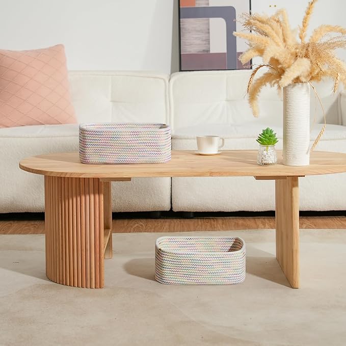 3-Pcs Shelf Baskets for Organizing, Closet Organizer Bins, Small Woven Baskets, Rope Toy Basket, Storage Basket for Shelves, Cube Decorative Box, 11.5×7.5×4.7”, Rainbow