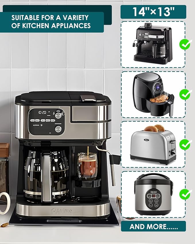 - Multiple Sizes & Colors: Choose from two sizes (14"x9.8" and 13"x14") and two colors (black and clear) to suit your needs. 14 x 9.8 inches for larger coffee machines and stand mixers, and 14 x 13 inches for 3-quart instant pots and standard dual coffee makers. Also great for air fryers, blenders, and rice cookers!