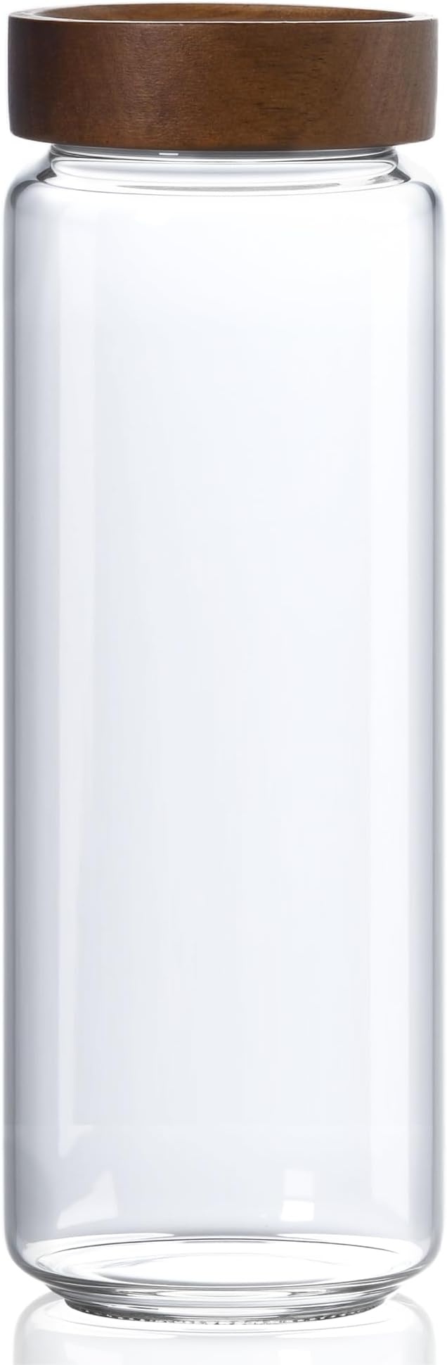 - VERSATILE & MODERN AESTHETIC: The jar is perfect for storing dry goods like flour, cereal, spices, and snacks, as well as liquids like juices and pickles. Its sleek glass body and retro acacia wood lid add a stylish touch, making it a versatile and decorative addition to kitchens, pantries, restaurants, and more.