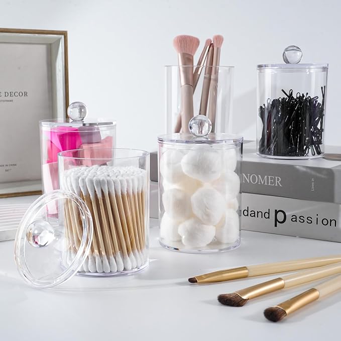 - PRODUCT INCLUDES:Product includes 3 x 10 oz,3 x 12 oz cotton swab jars with lids, smooth edges, safe and unbreakable