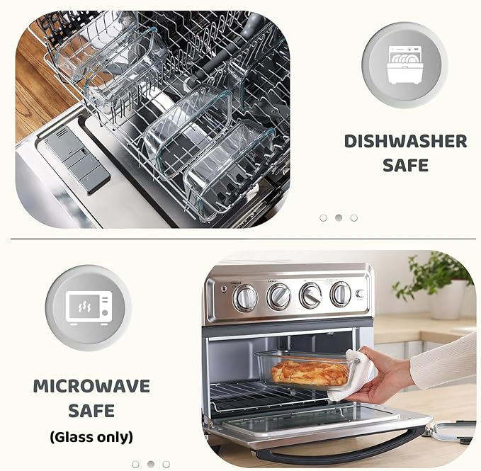 - 【Premium Borosilicate Glass】: Made from top-grade borosilicate glass, these containers boast durability, resilience against thermal shock, and compatibility with microwave, oven, freezer, and dishwasher use