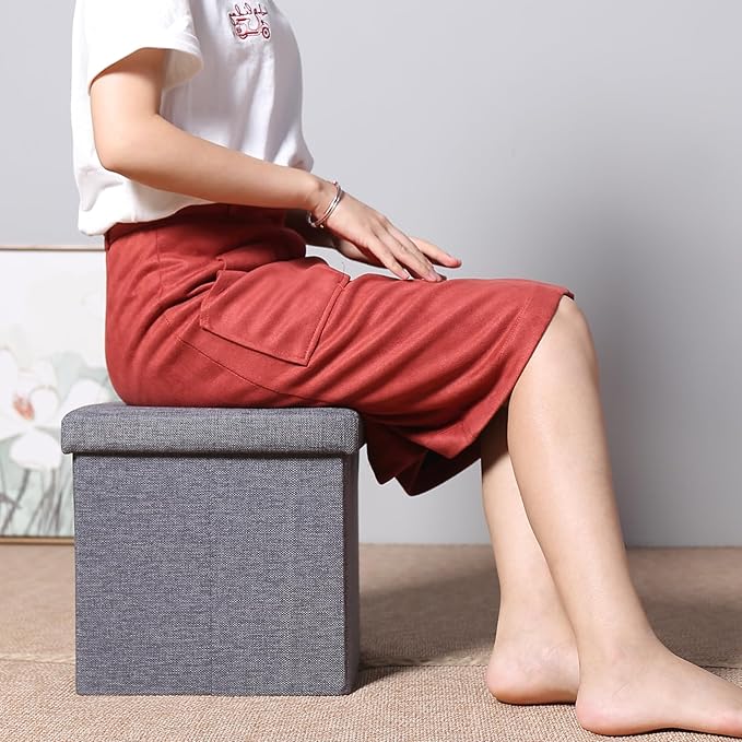 B FSOBEIIALEO Storage Ottoman Cube Foldable Footrest, Toy Chest & Seat for Living Room, Nursery, Bedroom 12.6 Inch Cube (Linen Grey)