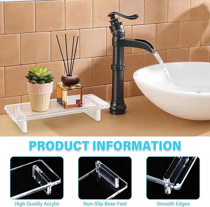 - Elegant & Functional Build- Crafted from durable acrylic with diamond-cut edges, this sleek bathroom tray complements any decor. Perfect as a kitchen soap tray or vanity sink tray for a polished, modern look.
