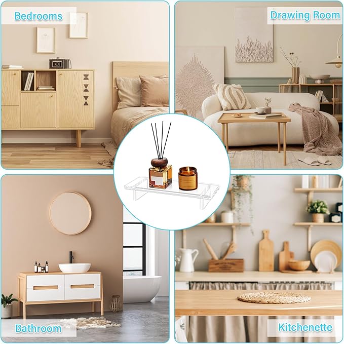 - Spacious & Versatile Design- This Acrylic Bathroom Counter Tray holds perfume bottles, soap dispensers, candles, plants, and more. Keep essentials organized and countertops clutter-free with this large bathroom tray countertop organizer.