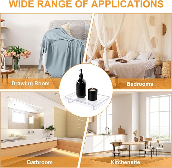 - 【Spacious & Versatile Design】-This Acrylic Bathroom Counter Tray holds perfume bottles, soap dispensers, candles, plants, and more. Keep essentials organized and countertops clutter-free with this large bathroom tray countertop organizer