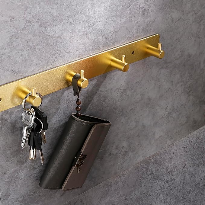 - Brushed Surface: Bathroom hook holder is made of aluminum space probe, brushed gold surface, balance aesthetics at the same time prevent corrosion and rust in daily use.