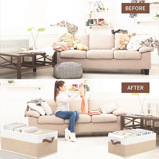 - DURABLE & STURDY DESIGN - The cloth storage bins made from premium linen fabric and thickened cardboard to ensuring sturdy structure and resistance to deformation, stackable and odorless, The delicate stitches contribute to the bins' durability