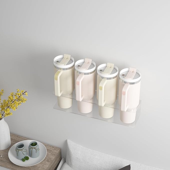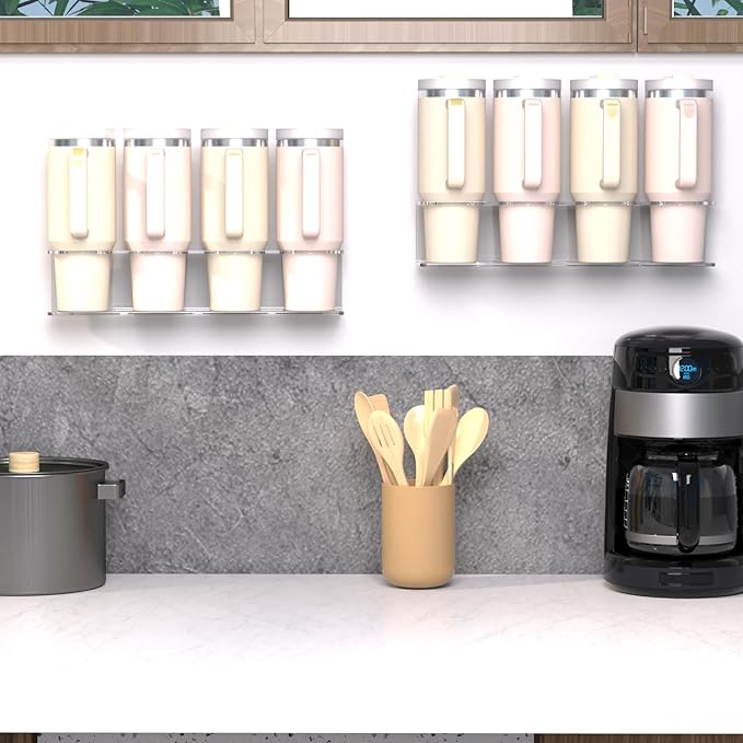 - 【PREMIUM AND SPACE-SAVING DESIGN】:The Stanley organizer is made of high-quality acrylic sheets, perfect for small kitchens with limited space, this innovative acrylic cup holder mounts to any wall. It efficiently organizes up to 8 Stanley 40 -15 ounce cups, freeing up valuable counter and cabinet space. Each cup holder size: 17L x 4.3W x 3.7H in