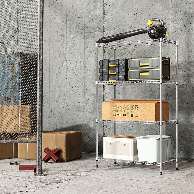 IZEUK 4-Tier Heavy Duty Steel Storage Shelves, Metal Shelf Wire Shelving Rack for Pantry, Kitchen, Home, or Office Organization (29.5" W x 13.7" D x 47.2" H, 1000LBS, Chrome)