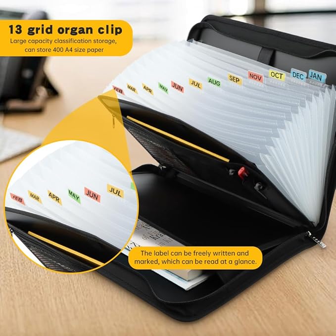- Unique Functional Design: Our accordion file folder organizer is equipped with double zippers for smooth access and closure, you can bid farewell to concerns about misplacing crucial papers. Colorful labels for classification, It allows you to quickly classify your files and quickly find the files you need when using it. Fireproof expandable file folder organizer ensures that each file is easy to identify.