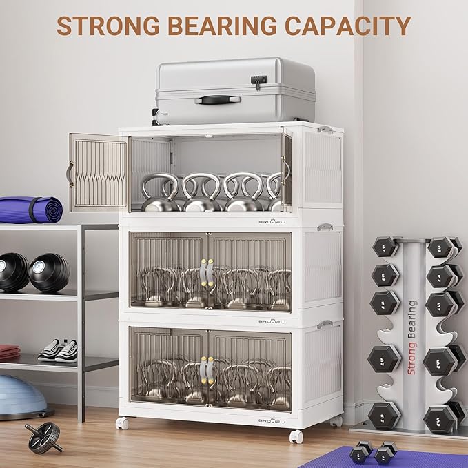 - 【5 Mins Easy Assembly & Warm Tips】The stackable storage bins open front only take 5 minutes to assemble the entire storage cabinet. Thanks to the foldable and stackable design, Broview v8 stackable storage bins can be disassembled and folded at any time when not in use. Warm Tips: Currently only 120QT black come with multi Lid, other need to be purchased separately.