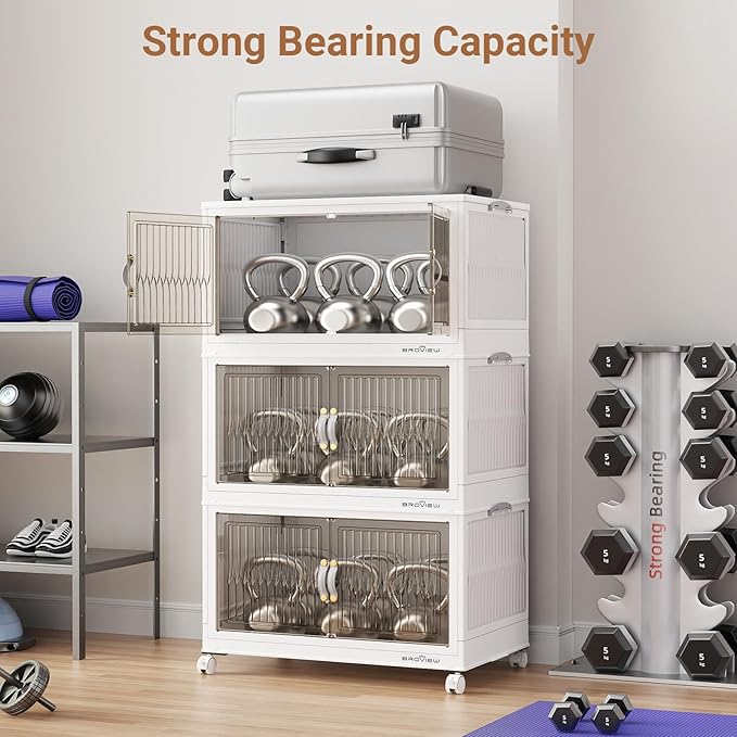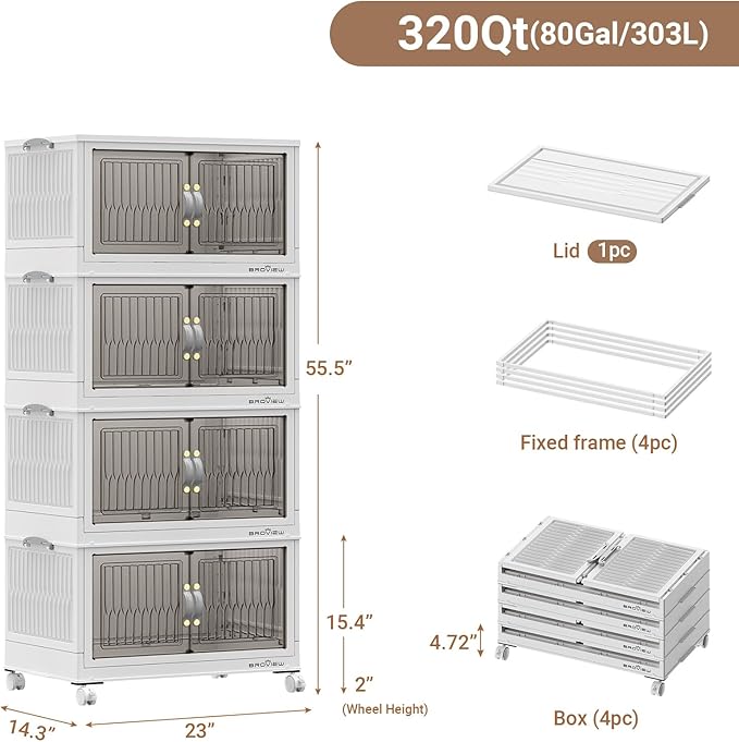 - 【5 Mins Easy Assembly & Warm Tips】The stackable storage bins open front only take 5 minutes to assemble the entire storage cabinet. Thanks to the foldable and stackable design, Broview v8 stackable storage bins can be disassembled and folded at any time when not in use. Warm Tips: Currently only 120QT black come with multi Lid, other need to be purchased separately.