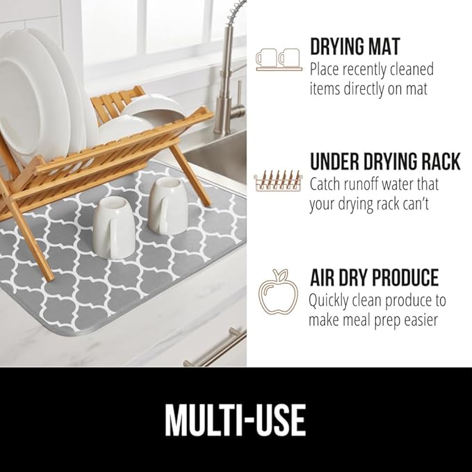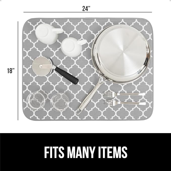GORILLA GRIP Ultra Water Absorbent Microfiber Dish Drying Mat, 18x24, Quick Dry Mesh, Slip Resistant Pad for Sink Dishes or Under Rack, Kitchen Counter Accessories, Machine Wash, 2 Pack Quatrefoil