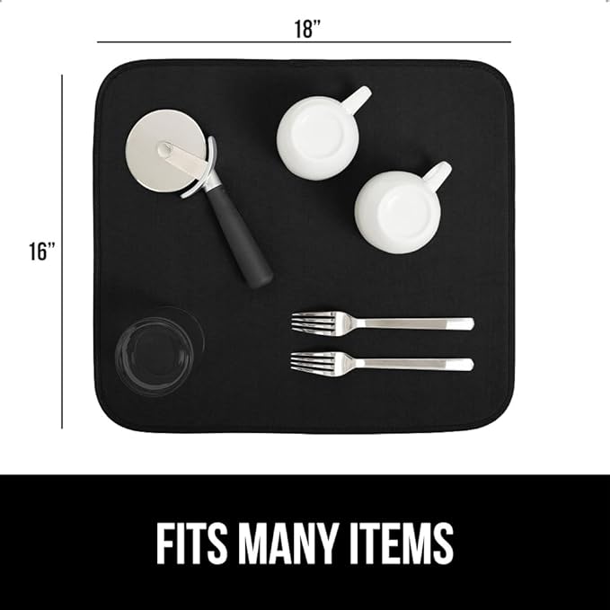 GORILLA GRIP Ultra Water Absorbent Microfiber Dish Drying Mat, Quick Dry Thick Mesh, Slip Resistant Pad for Sink Dishes or Under Rack, Kitchen Counter Accessories, 16x18, Machine Wash, 2 Pack Black