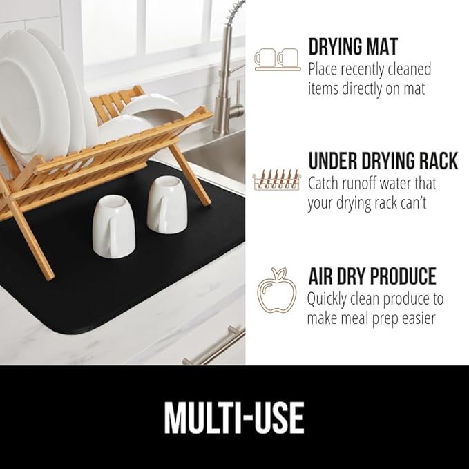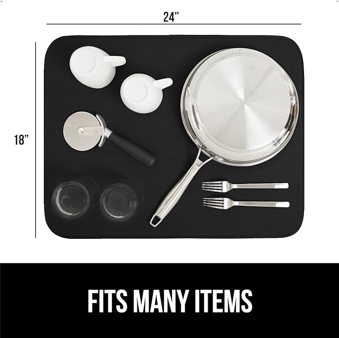 GORILLA GRIP Ultra Water Absorbent Microfiber Dish Drying Mat, 18x24, Quick Dry Thick Mesh, Slip Resistant Pad for Sink Dishes or Under Rack, Kitchen Counter Accessories, Machine Wash, 2 Pack Black
