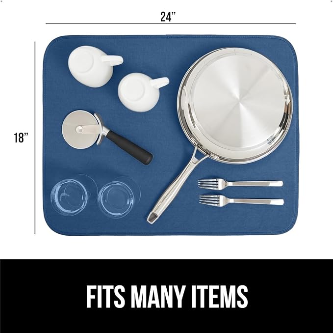 GORILLA GRIP Ultra Water Absorbent Microfiber Dish Drying Mat, 18x24, Quick Dry Thick Mesh, Slip Resistant Pad for Sink Dishes or Under Rack, Kitchen Counter Accessories, Machine Wash, Blue