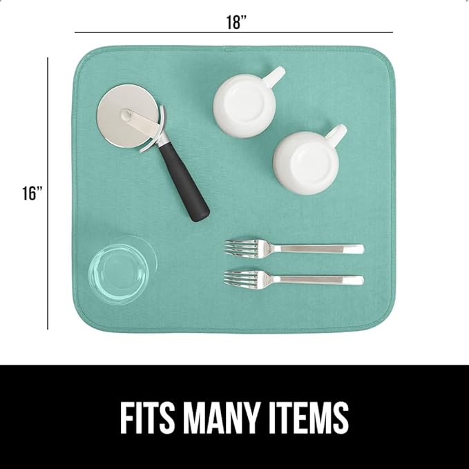 GORILLA GRIP Ultra Water Absorbent Microfiber Dish Drying Mat, Quick Dry Thick Mesh, Slip Resistant Pad for Sink Dishes or Under Rack, Kitchen Counter Accessories, 16x18, Machine Wash, 2 Pack Mint