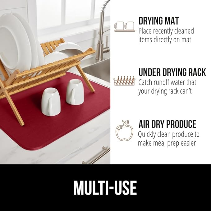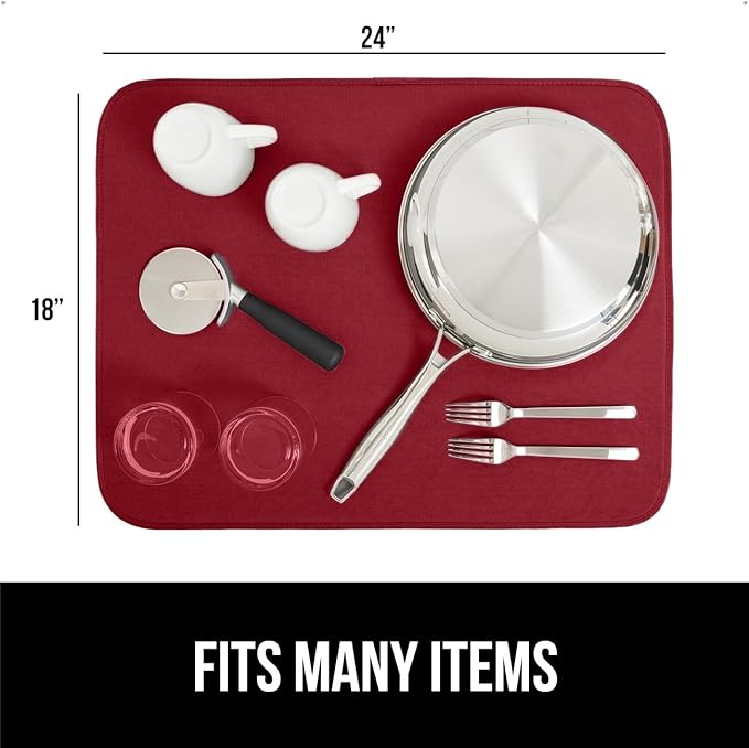 GORILLA GRIP Ultra Water Absorbent Microfiber Dish Drying Mat, 18x24, Quick Dry Thick Mesh, Slip Resistant Pad for Sink Dishes or Under Rack, Kitchen Counter Accessories, Machine Wash, 2 Pack Red