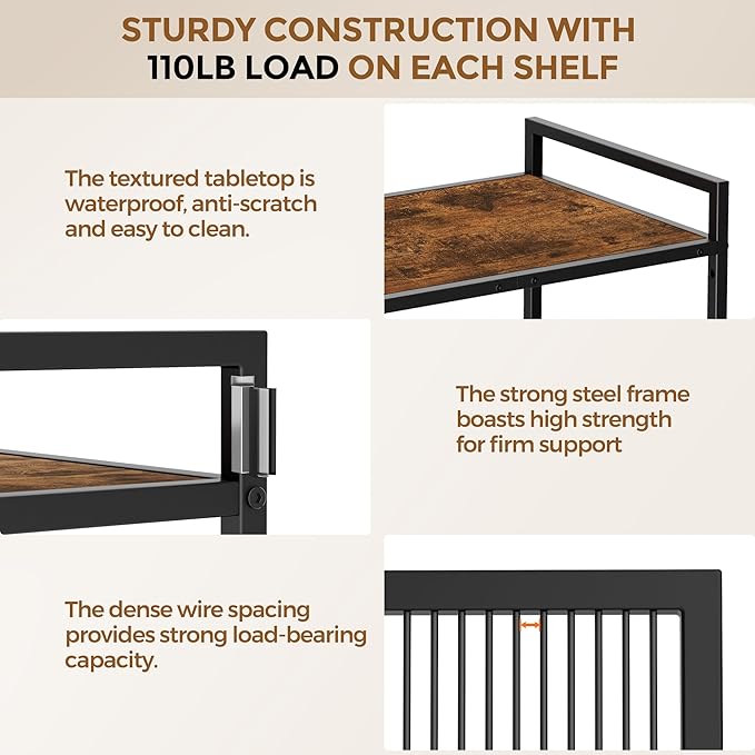 - 【Sturdy Construction With 110lb Load On Each Shelf】XIVIRACK kitchen storage rack organizer are made high quality materials.The textured engineered wood tabletop is waterproof, anti-scratch and easy to clean.The strong steel frame boasts high strength for firm support.The dense wire spacing provides strong load-bearing capacity.