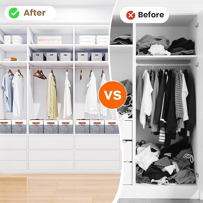 - Collapsible Design: The fabric storage cubes can be folded flat when not in use to save space or transport; fabric baskets are easy to clean;simply dust with a soft dry clothLeather Handle:Each storage bin for organization comes with two sturdy leather handles – one on each end -- to ensure durability and tear resistance. Bring a sense of order and refinement and a touch of warmth to your living room, bedroom, bathroom, office, nursery room, laundry room and more.