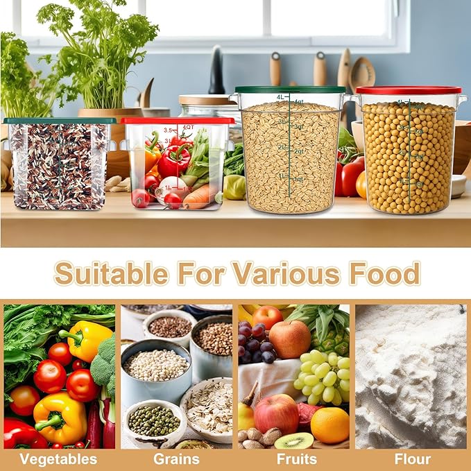 - Comprehensive Package: this package includes 2 round and 2 square 4 quart containers with lids, offering a versatile selection for a variety of storage needs; Whether you need to rise dough, or marinating meat to storing sugar and oats, offering flexibility for numerous kitchen