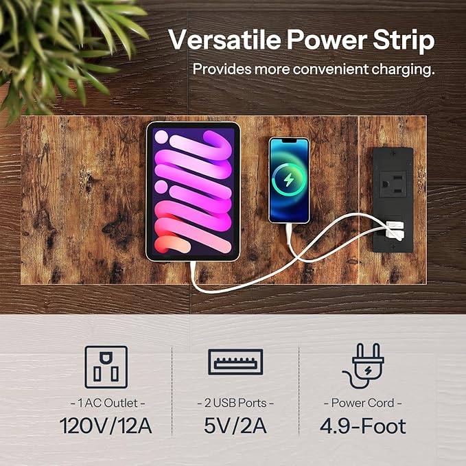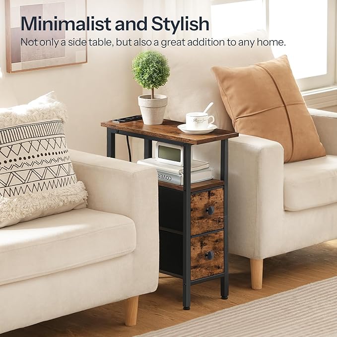 - Handy Socket: The Narrow end table with the charging station within reach has 1 outlet, 2 USB ports and a 4.9-foot long power cord. It is compact and convenient for you to charge your phone, smart watch etc beside the bed or sofa without need of additional power source