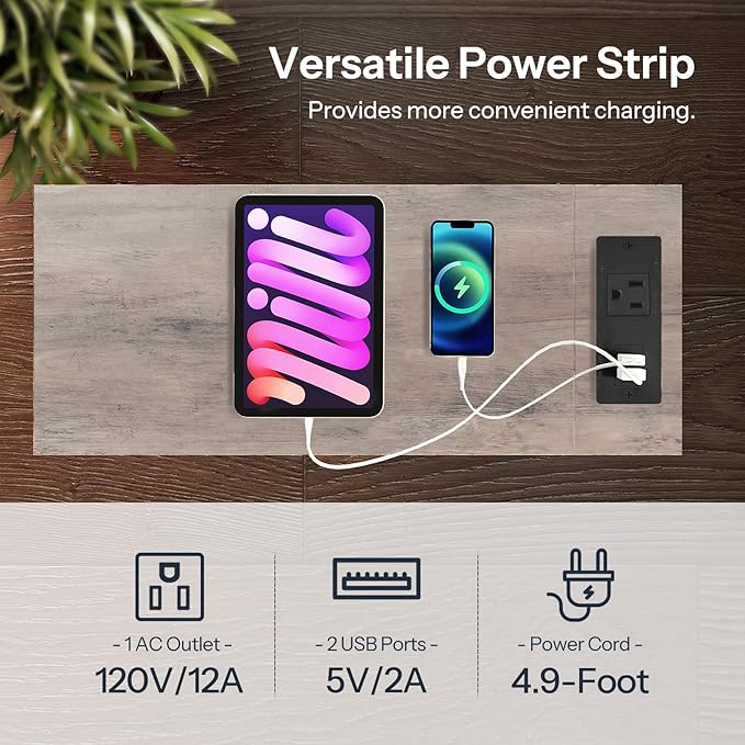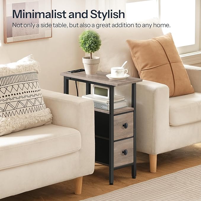 - Handy Socket: The Narrow end table with the charging station within reach has 1 outlet, 2 USB ports and a 4.9-foot long power cord. It is compact and convenient for you to charge your phone, smart watch etc beside the bed or sofa without need of additional power source