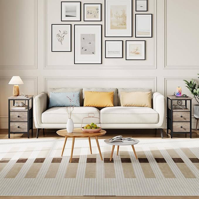 - Hassle-Free Storage: With 2 non-woven drawers and 2 open shelves, this side table measures 11.8"L x 18.9"W x 23.6"H and offers sufficient space for you to store different life supplies and household gadgets tidily, keeping home neat and organized