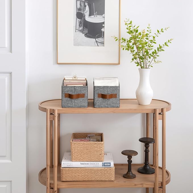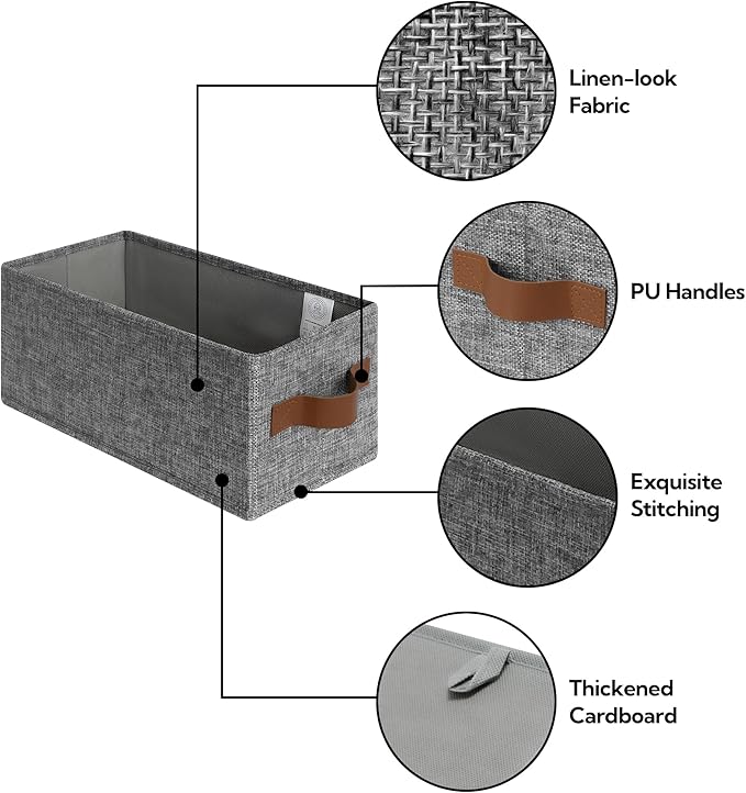 GRANNY SAYS Small Fabric Storage Bins with PU Handles, Storage Baskets for Shelves, Perfume Storage, Narrow Baskets for Organizing DVD, Photos, Aromatherapy, Scarf, Diaper, Cd, 3-Pack, Gray