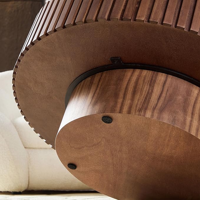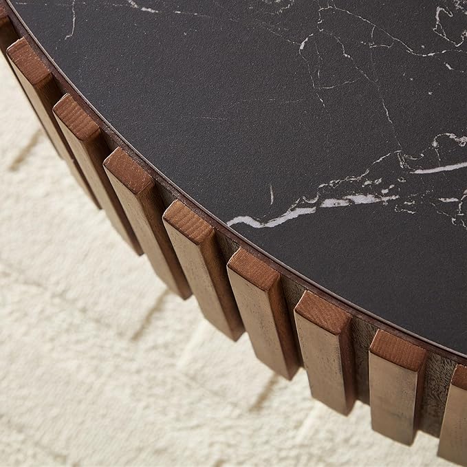 35.43'' Round Coffee Table Wood Circle Coffee Table with Marble Top Pedestal Center Table Fluted Accent Tea Table for Living Room Apartment Office Walnut