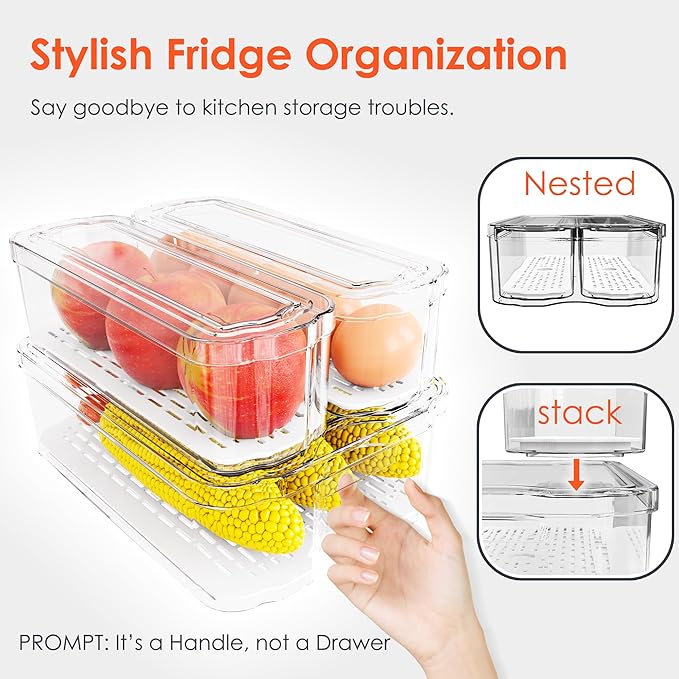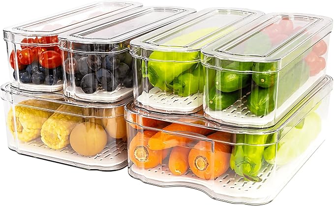- [Drain Tray Design] The freezer storage containers come with a drain tray, perfect for placing freshly washed produce. The tray keeps the food elevated, so it doesn’t sit in water, this will help keep food fresh & extend the shelf life of food in the fridge