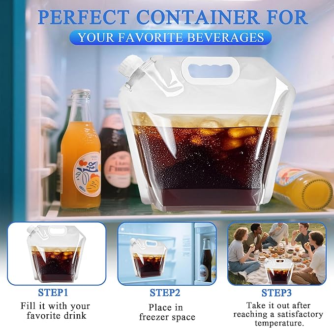 - 【Food Grade Materials】: Made from Food Grade PE+PP+ polyamide, it is free of harmful chemicals such as BPA, PVC and DEHP. Ensures no harmful chemicals can leach into stored beverages, making it a safe choice for you and your family.