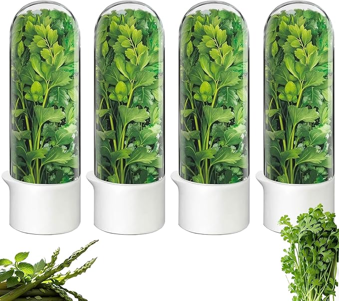 Herb Saver for Refrigerator, Fresh Herbs Lettuce Keeper for Refrigerator, Cilantro Container for Fridge Fres Parsley Mint Leaves Fresh Herb Keeper, Refrigerato Storage for Fresh for 2-3 Weeks (4PCS)