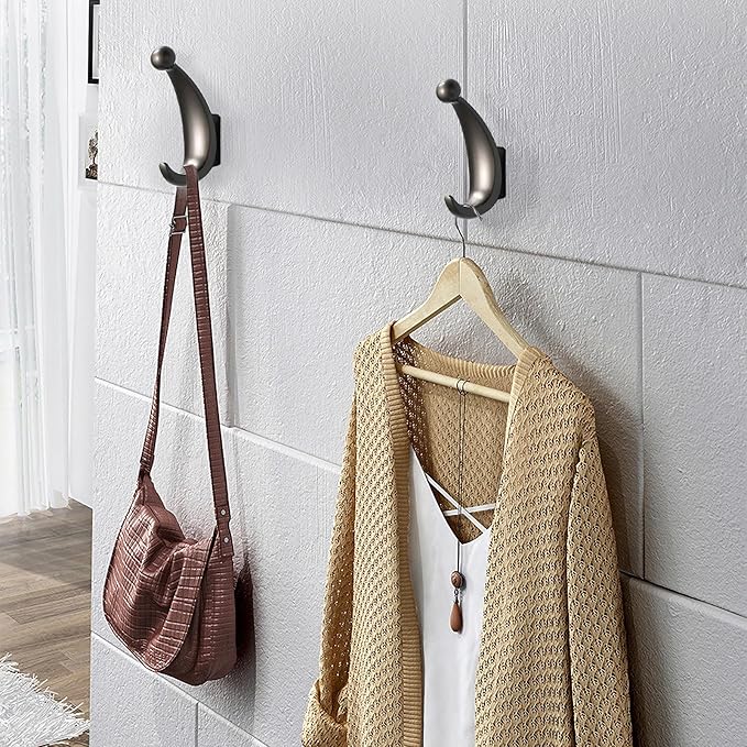 - Double-Layer Hook Design: Featuring a double-hook configuration, this coat hook maximizes space utilization while accommodating multiple items at once, enhancing convenience in your home