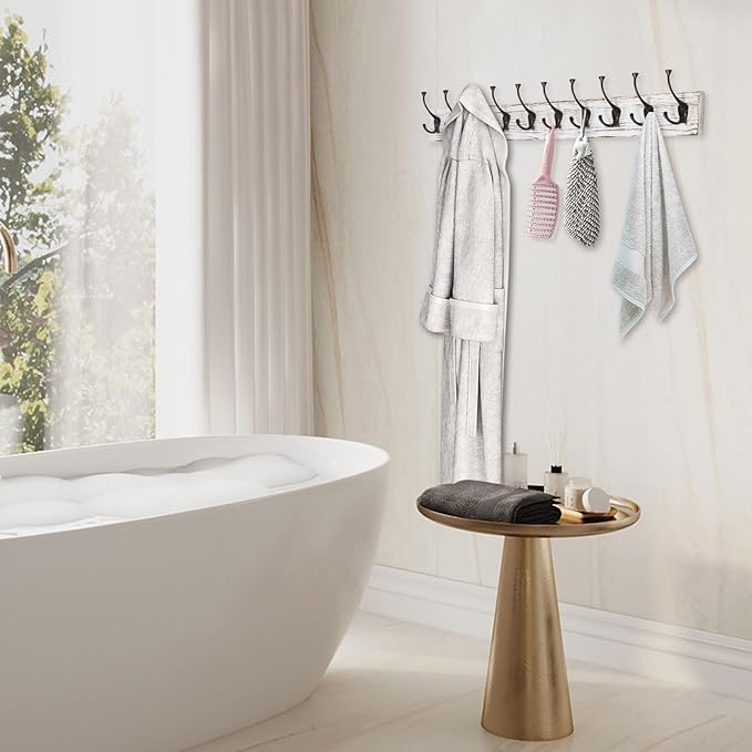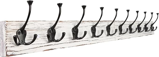 - Rustic and Heavy Duty: The old white colored wood planks are made of pine solid wood, with delicate lines, decorating the home environment with retro and pure. And each sturdy zinc alloy Tri-hooks can hold up to 15 lbs of weight