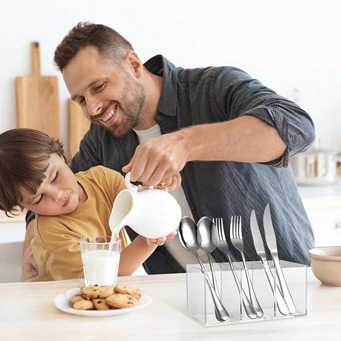 - Easy to Clean: The smooth acrylic surface is easy to clean. Just rinse it with water or wipe it with a damp cloth to keep the spoon and fork holder looking fresh. The transparent design lets you easily check the cleanliness inside, ensuring sanitary.