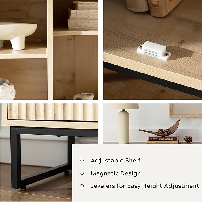 Fluted Storage Cabinet with 3 Doors, Sideboard Buffet Cabinets with Adjustable Shelves, Multifunctional Console Table with Storage Credenza for Living Room, Hallway, Light Oak