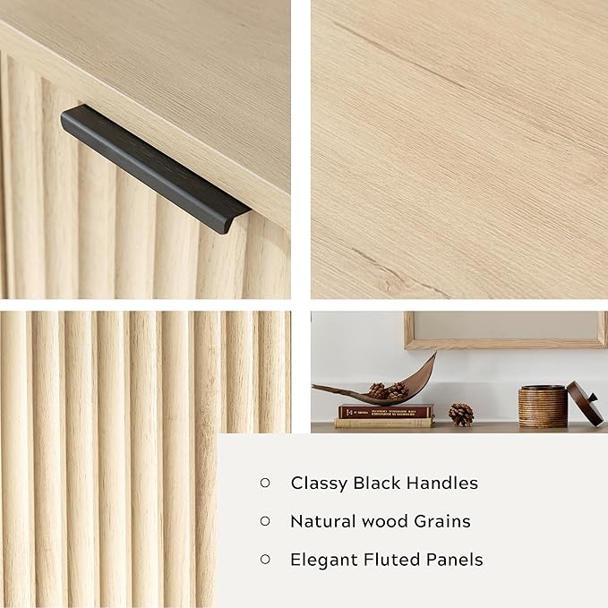 - 【Elevate Your Room with Modern Elegance】The sleek, glossy oak painted finish, charming fluted doors, luxurious black handles, and legs come together to create a fresh and sophisticated elegance that seamlessly integrates with your home decor
