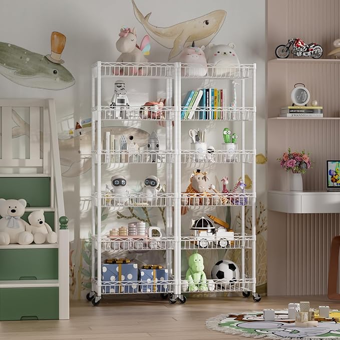 6 Tier Basket Shelf Wire Shelving Unit Adjustable Storage Shelves Big Basket Rack for Garage Kitchen Office Pantry Corner 17.2" Dx12.2 Wx63 H White