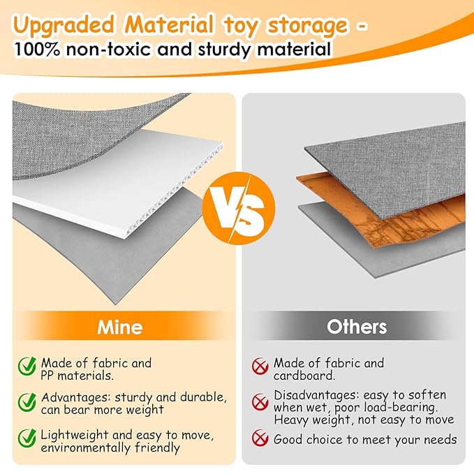 - Sturdy and More-Durable Design:Made from premium linen fabric and reinforced cardboard , this toy chest storage maintains its shape, while sturdy handles ensure easy transport