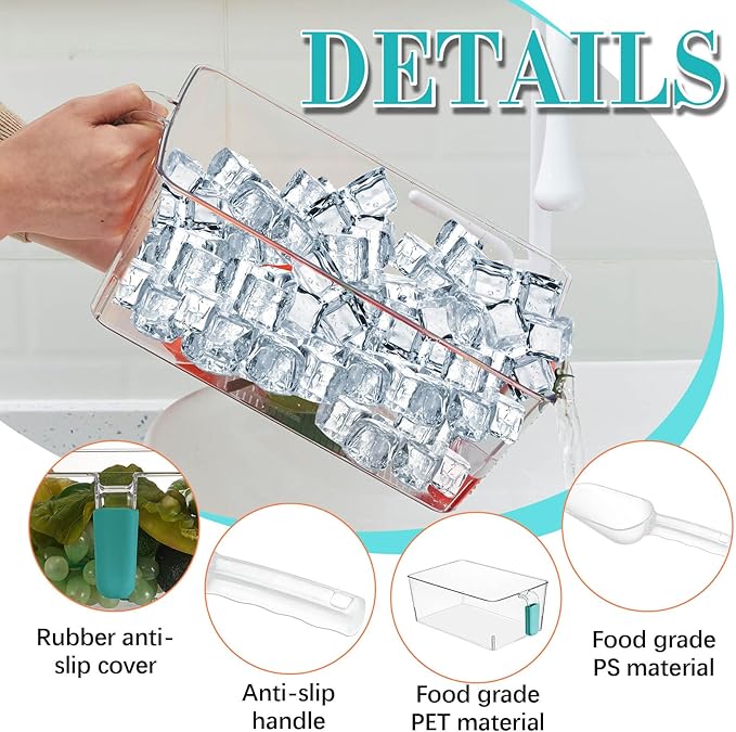 - Quality Materials with Comfort in Mind: this quality ice container for freezer and ice scoop for freezer bin are both crafted from safe plastic materials, the bin is featured comfortable silicone cover handles, enhancing the ease of use; All components are safe, reliable, and comfortable, ensuring product longevity