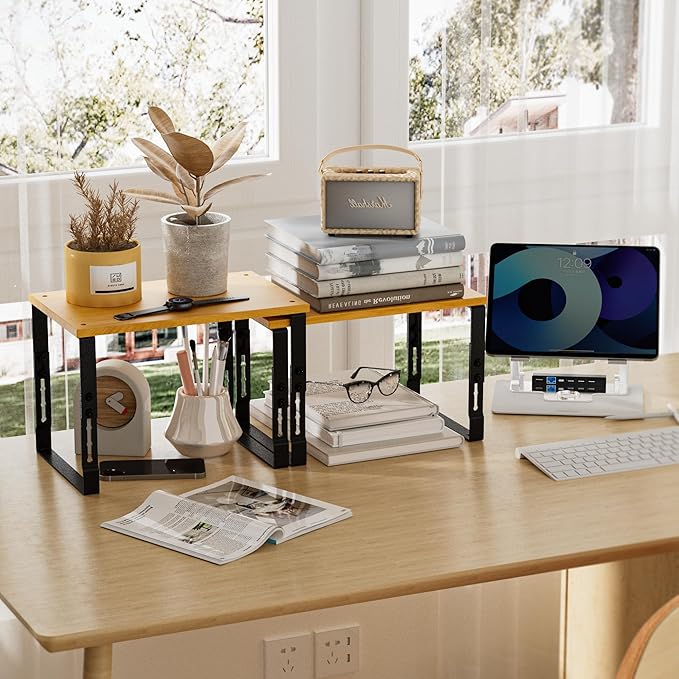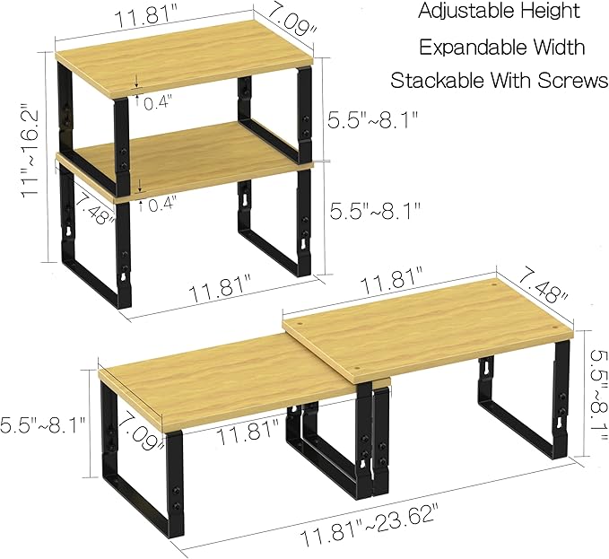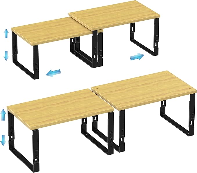 Expandable Kitchen Cabinet Organizer Shelves – Stackable Adjustable Metal and Wood Storage Racks for Countertop, Pantry, Garage Set of 2 Spice Rack – Easy Assembly, Space-Saving(2 Packs/Medium/Black)