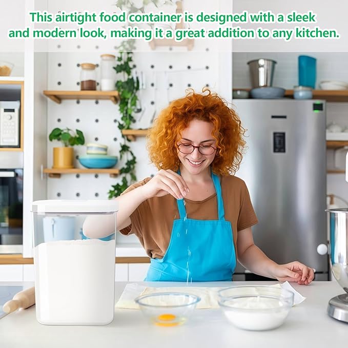 - VERSATILE FLOUR STORAGE CONTAINERS: With the generous 5.6 liters/ 6 Qt / 23.6 cup capacity, this food storage containers can hold a variety of items, including rice, flour, sugar, pet food, snacks, laundry detergent, coffee pods, or any other household essentials. Say goodbye to cluttered shelves and cabinets